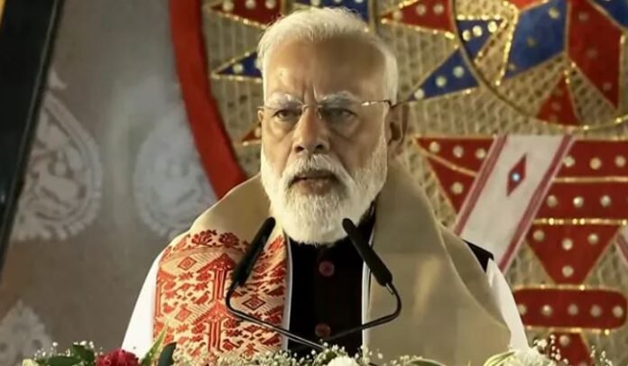 पीएम मोदी ने कहा कि यह धरती वीरों की धरती है. हर क्षेत्र में अपनी प्रतिभा दिखाने वाले बेटे-बेटियों की धरती है. उन्होंने कहा कि कल मुझे गुवाहाटी में बागुरुम्बा द्वो प्रोग्राम देखने का मौका मिला. बोडो समुदाय की टैलेंटेड बेटियों ने अपने बागुरुम्बा परफॉर्मेंस से एक नया रिकॉर्ड बनाया. इस अनोखे और जोशीले शो में 10,000 से ज्यादा कलाकारों ने हिस्सा लिया, जिसने वहां मौजूद सभी लोगों का मन मोह लिया.