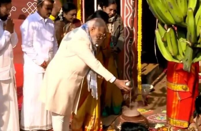 नई दिल्ली। प्रधानमंत्री नरेंद्र मोदी ने पोंगल के पावन अवसर पर केंद्रीय सूचना एवं प्रसारण राज्य मंत्री एल. मुरुगन के आवास पर पहुंचकर पूरे विधि-विधान से पूजा-अर्चना की। इस दौरान उन्होंने तमिल परंपराओं के अनुसार पोंगल उत्सव में भाग लिया और देशवासियों सहित दुनिया भर में रह रहे तमिल समुदाय को इस पर्व की शुभकामनाएं दीं। प्रधानमंत्री मोदी ने इस अवसर पर कहा, कि पोंगल अब केवल तमिलनाडु तक सीमित नहीं रहा, बल्कि यह एक ग्लोबल त्योहार बन चुका है, जो प्रकृति, परिवार और समाज के बीच संतुलन का संदेश देता है।