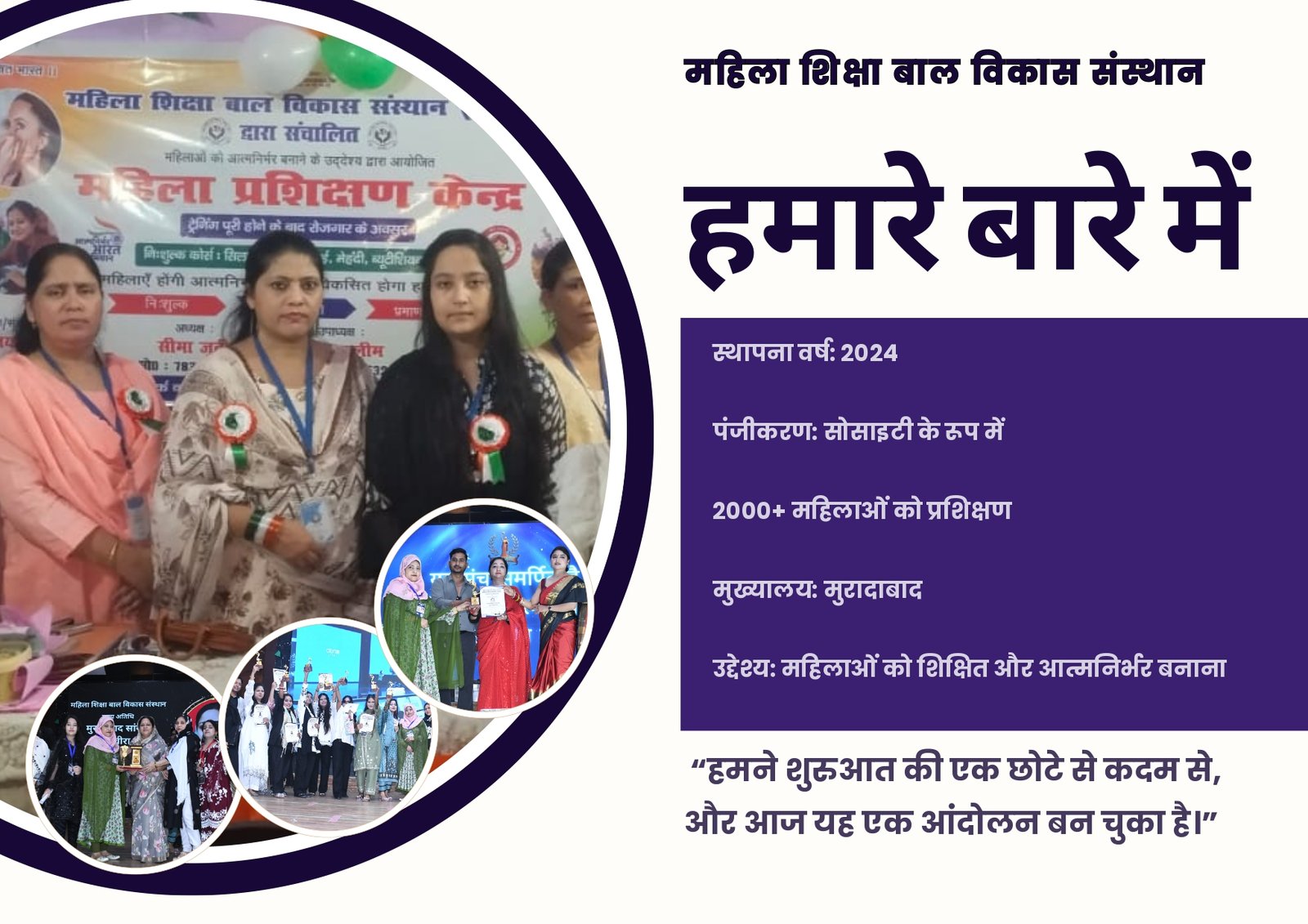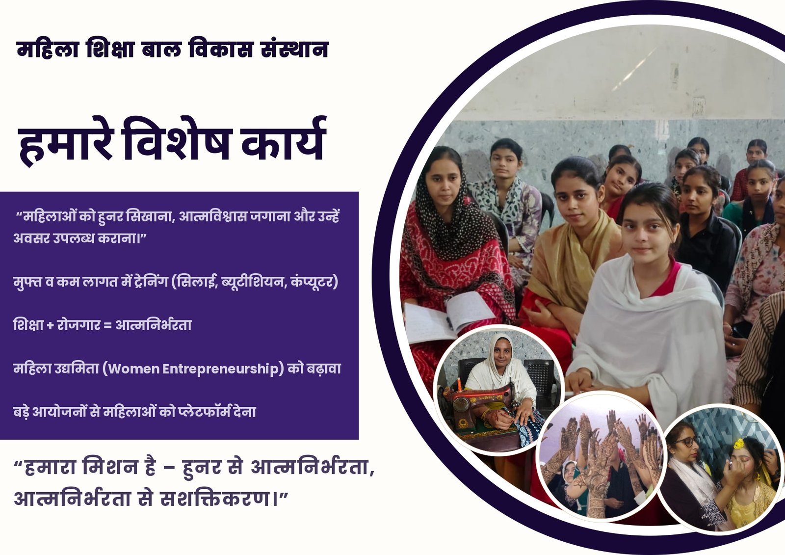 “हर महिला को शिक्षित, आत्मनिर्भर और सम्मानित बनाना।”